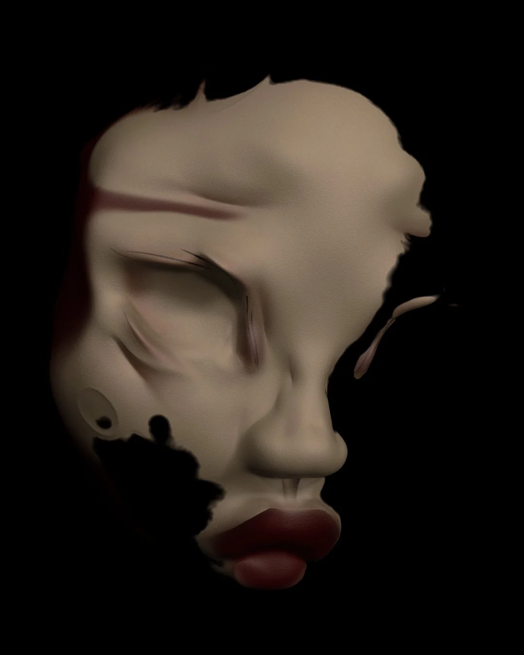 Rather than representing identity, these masks function as abstract forms shaped by darker, often unspoken emotional states. Through distortion, materiality, and movement, the work brings what is typically hidden into a more tangible form.